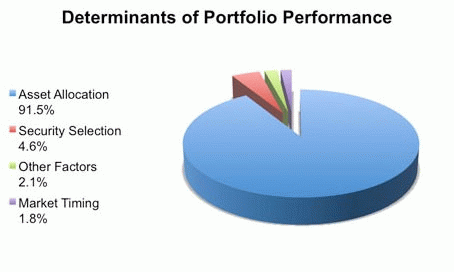 В США, проводилось исследование результата деятельности 91 крупного фонда, за период с 1974 по 1984 гг., которое показало то, что грамотное распределение активов в портфеле, является главным фактором эффективности портфеля. Выбор времени покупки, и выбор ценных бумаг играют меньшую роль. Позже исследование провели еще раз, используя новые данные, но результаты остались неизменными.